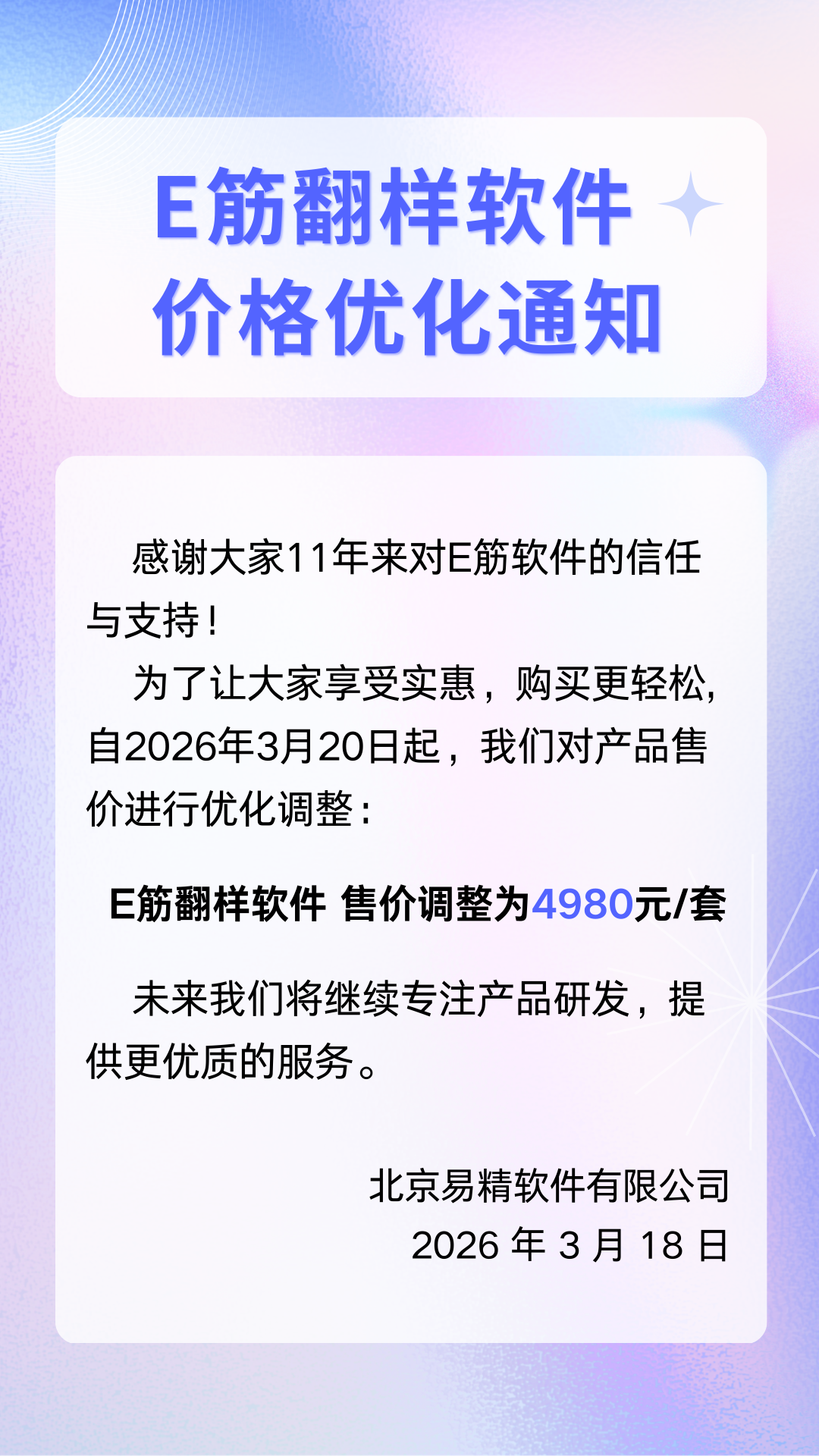 E筋翻樣軟件,價格優化通知